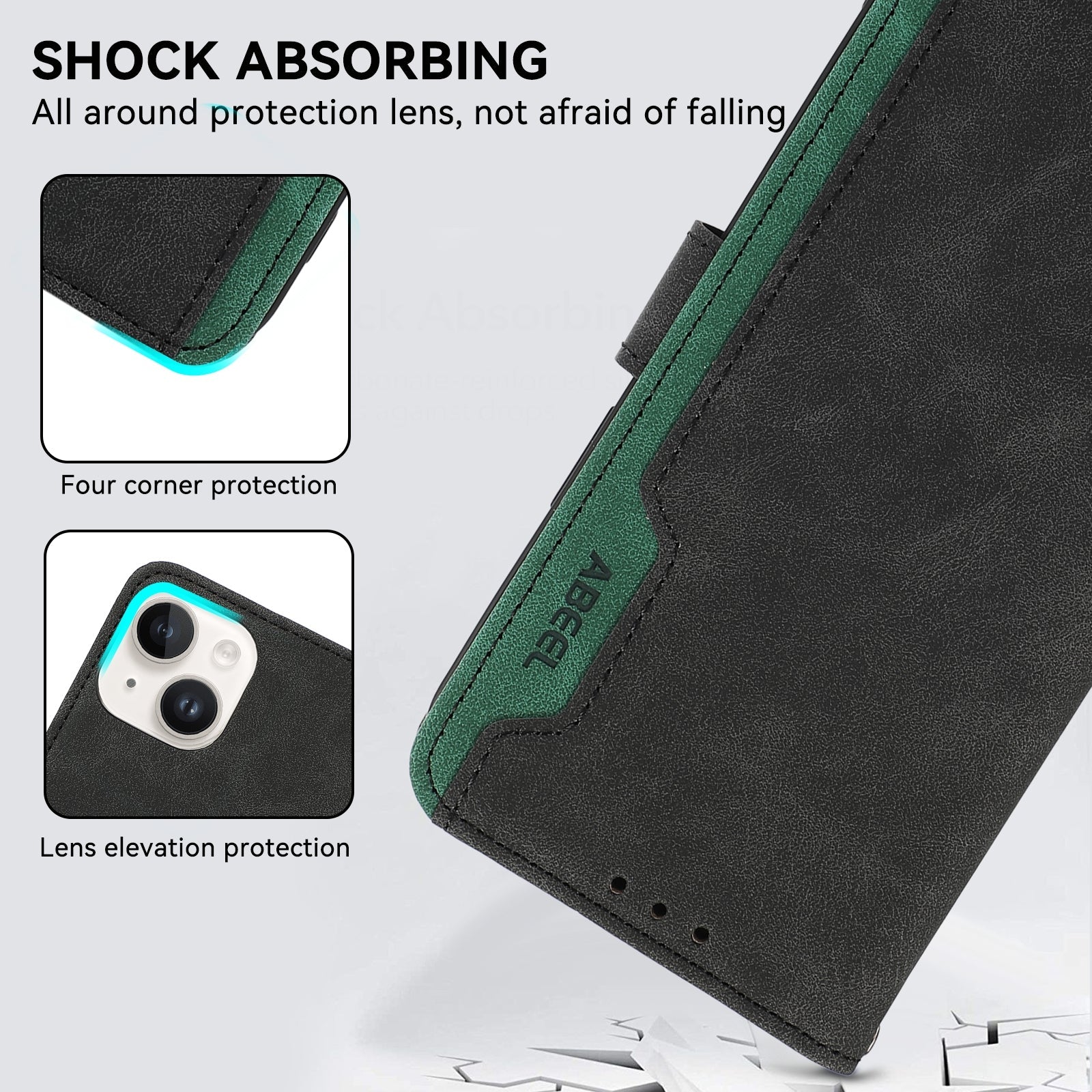 For Redmi 14C 4G ABEEL Color Block Magnetic RFID Leather Phone Case(Black-Green)