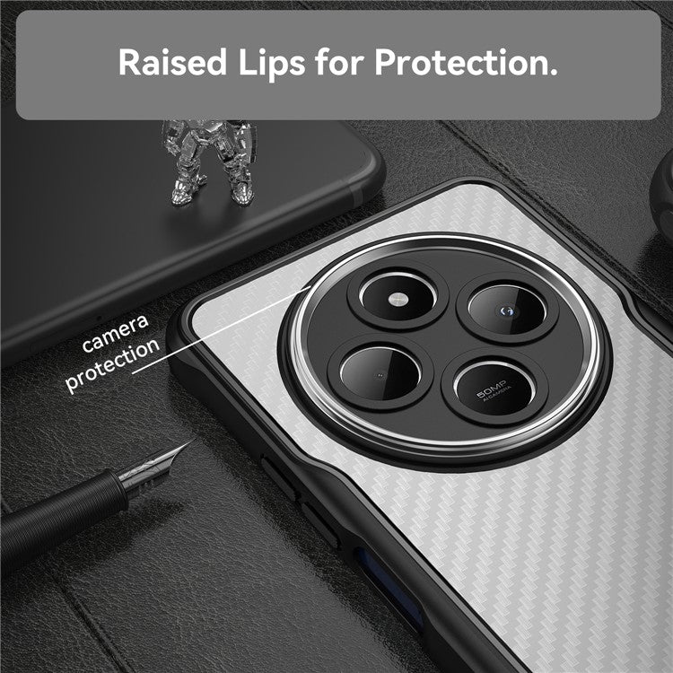 For Xiaomi Poco C75 4G / Redmi 14R 5G / 14C 4G Case Carbon Fiber Scratch-Resistant TPU+PC Phone Cover - Black