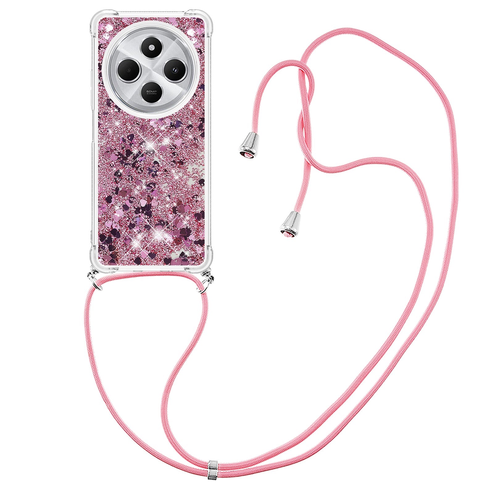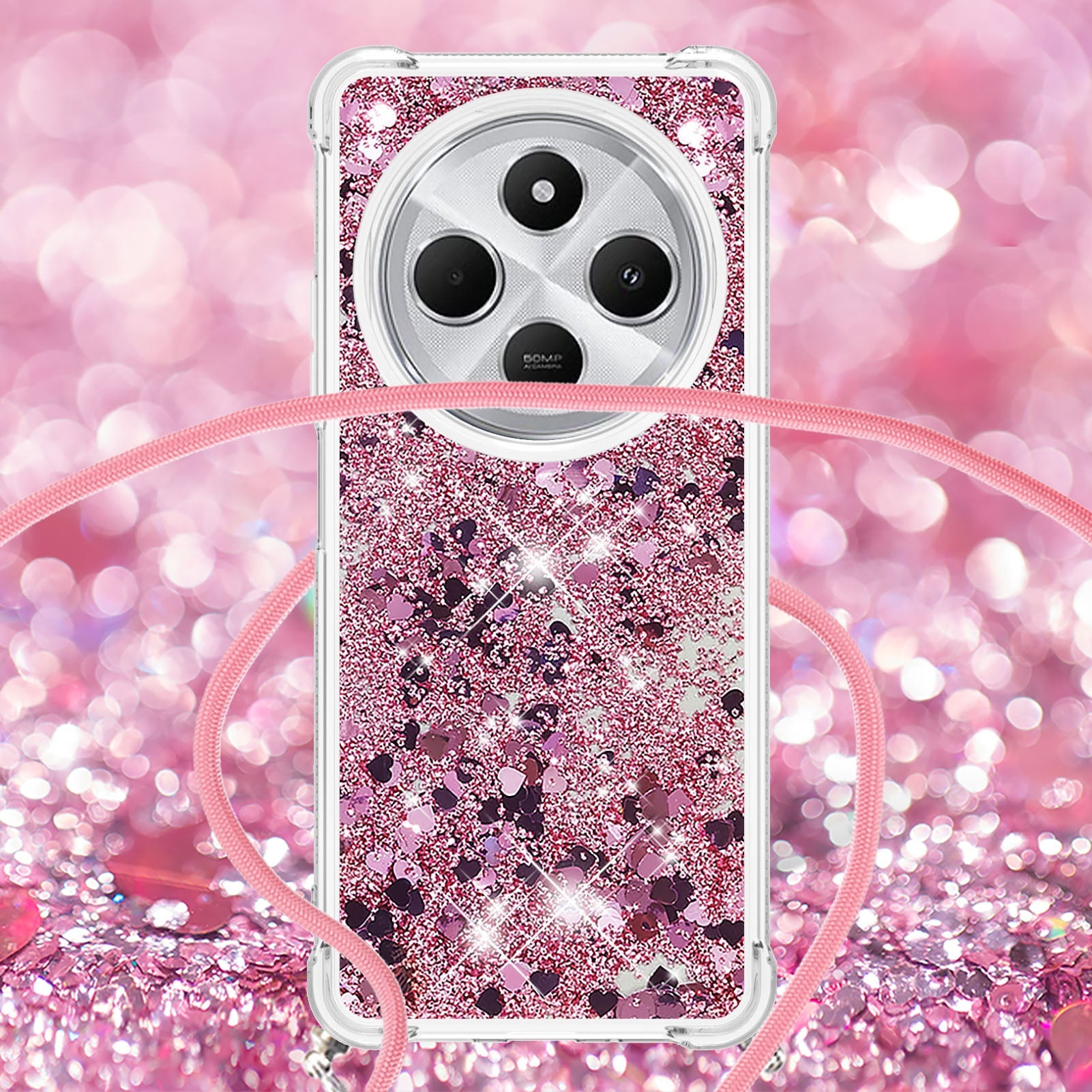 For Xiaomi Redmi 14R 5G / Xiaomi Poco C75 4G / Xiaomi Redmi 14C 4G Case Quicksand TPU Phone Cover - Rose Gold / Hearts
