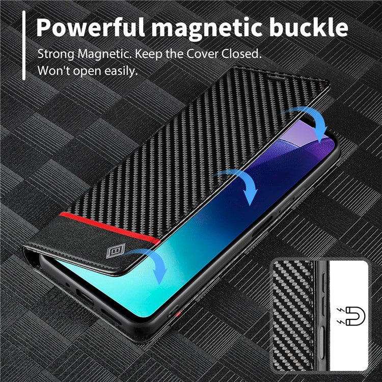 LC.IMEEKE For Xiaomi Poco C75 4G / Redmi 14R 5G / 14C 4G Case Carbon Fiber Texture Phone Cover Stand Card Holder - Horizontal Stripe