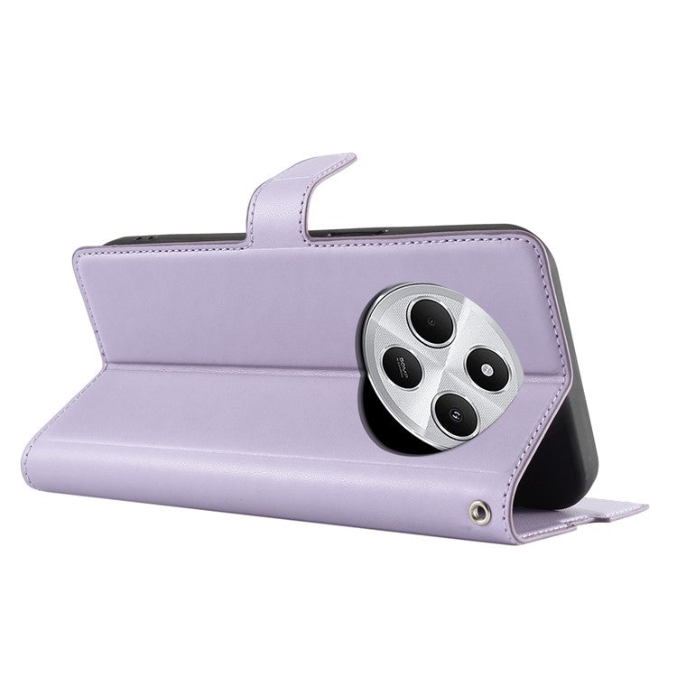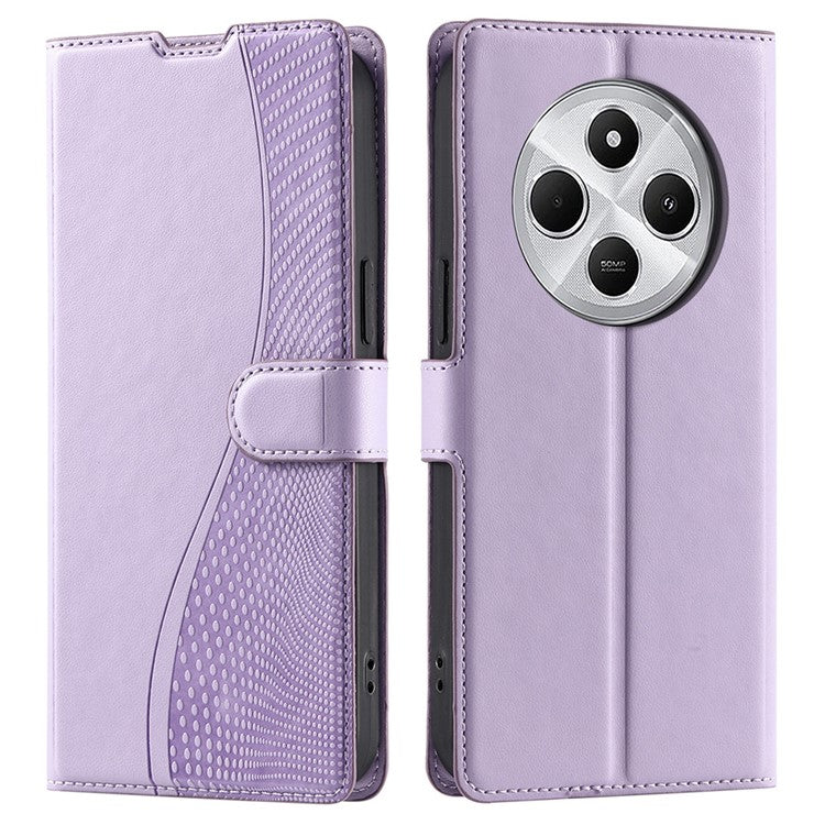 Leather Case for Xiaomi Poco C75 4G / Redmi 14R 5G / 14C 4G Dots Imprinted Phone Cover with Card Slot, Strap - Purple