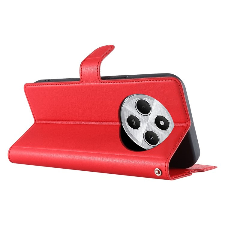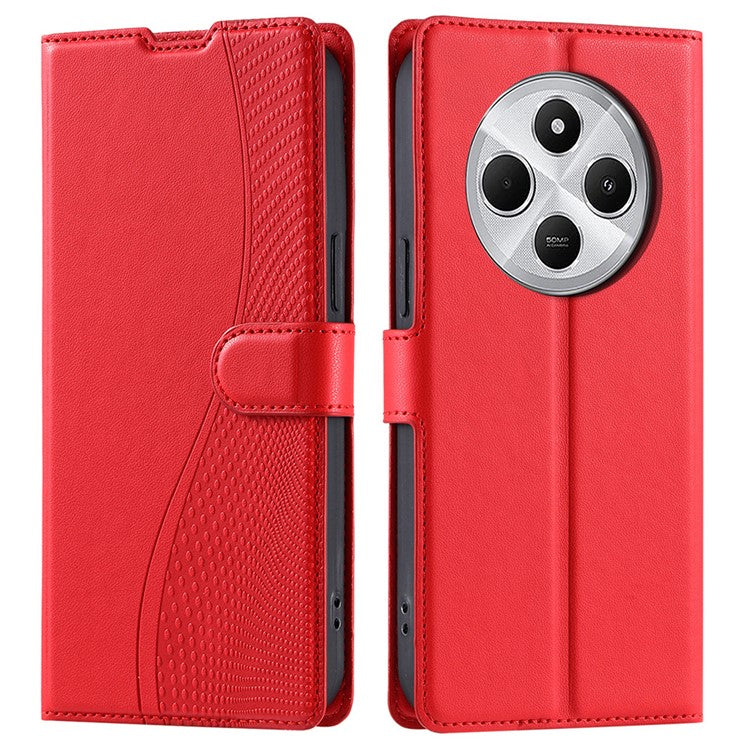 Leather Case for Xiaomi Poco C75 4G / Redmi 14R 5G / 14C 4G Dots Imprinted Phone Cover with Card Slot, Strap - Red
