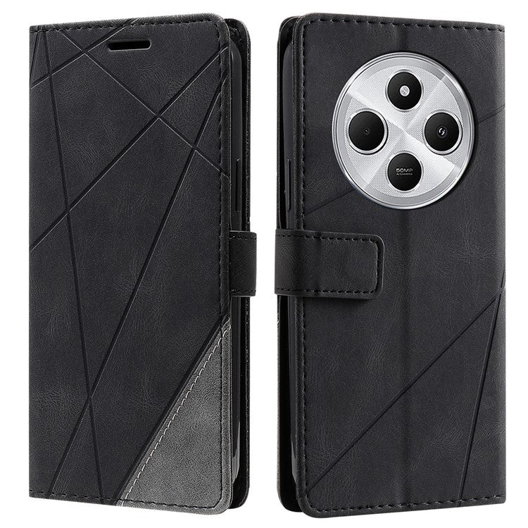 Leather Case for Xiaomi Poco C75 4G / Redmi 14R 5G / 14C 4G Splicing Wallet Phone Cover - Black
