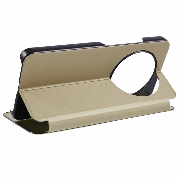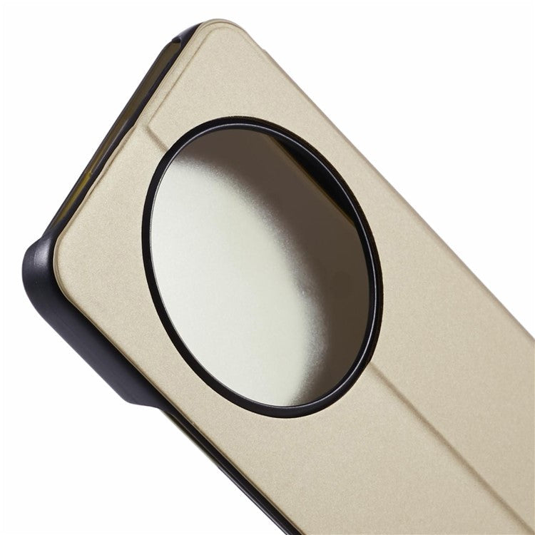 Leather Case for Xiaomi Poco C75 4G / Redmi 14R 5G / 14C 4G View Window Stand Flip Phone Cover - Gold
