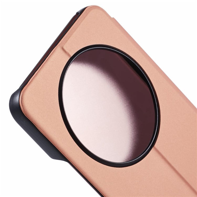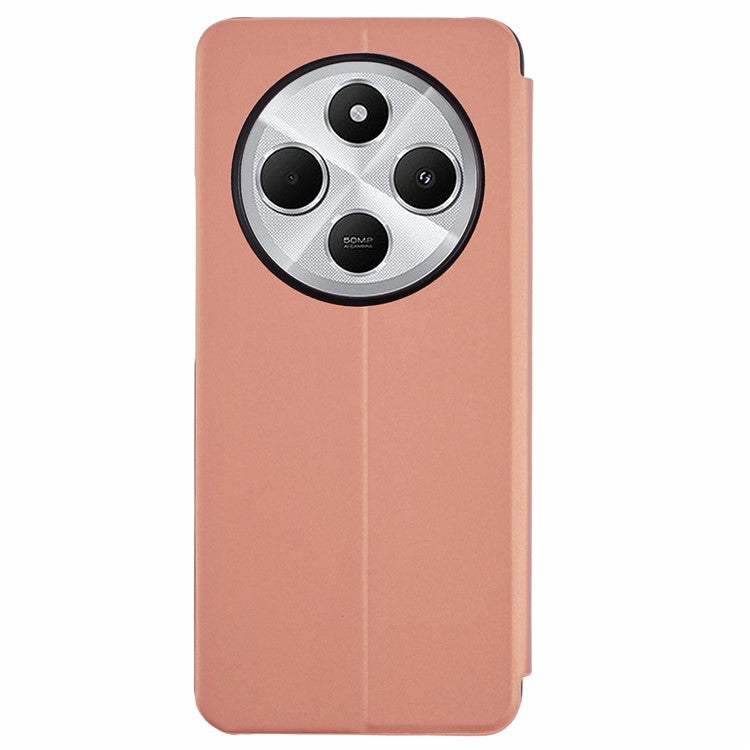 Leather Case for Xiaomi Poco C75 4G / Redmi 14R 5G / 14C 4G View Window Stand Flip Phone Cover - Rose Gold
