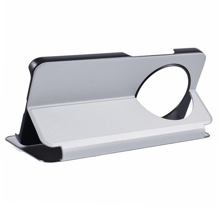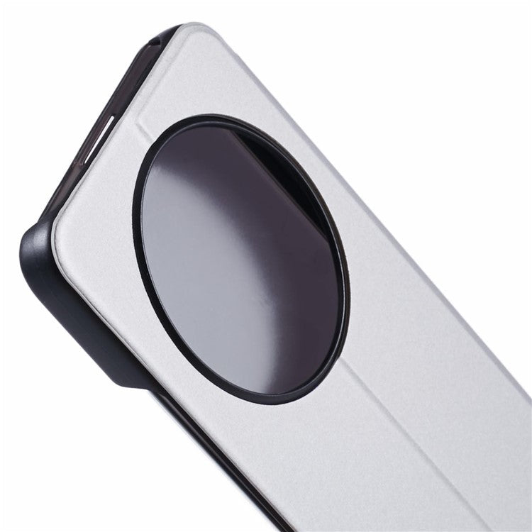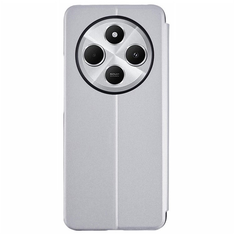 Leather Case for Xiaomi Poco C75 4G / Redmi 14R 5G / 14C 4G View Window Stand Flip Phone Cover - Silver