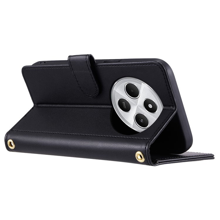 Leather Case for Xiaomi Poco C75 4G / Redmi 14R 5G / 14C 4G Wallet Rhombus Grid Phone Cover - Black