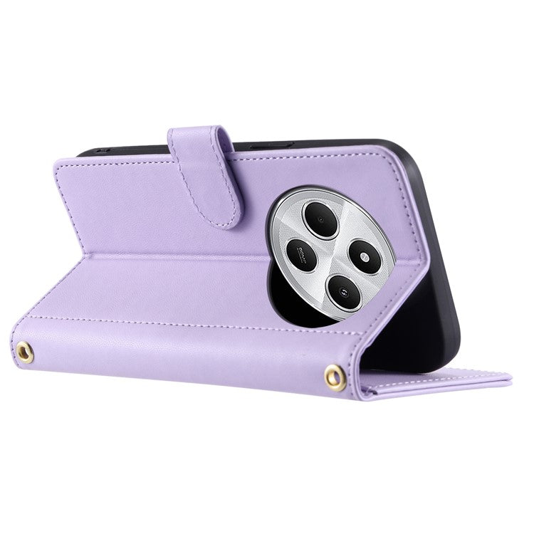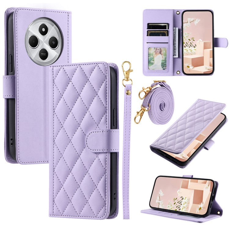 Leather Case for Xiaomi Poco C75 4G / Redmi 14R 5G / 14C 4G Wallet Rhombus Grid Phone Cover - Purple