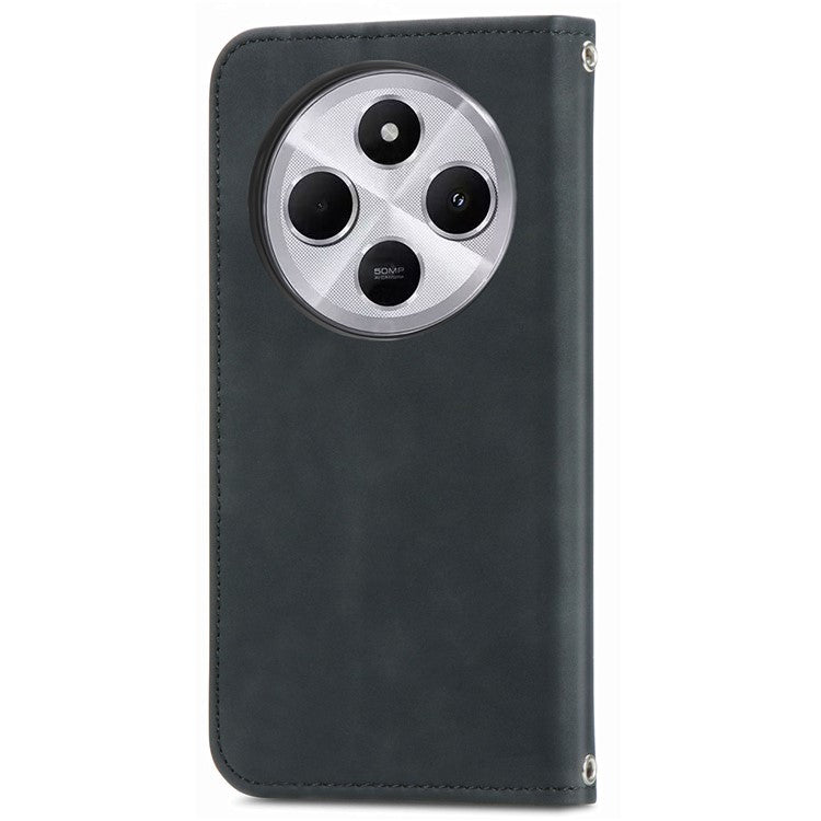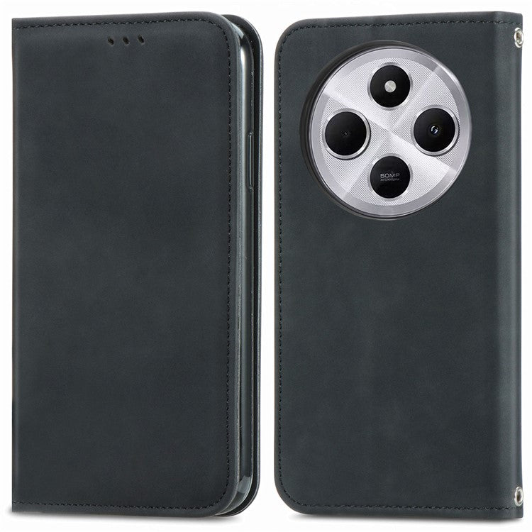 Leather Case For Xiaomi Redmi 14C 4G / 14R 5G / Poco C75 4G Skin Touch Feeling Card Holder Phone Cover Magnetic Absorption - Black