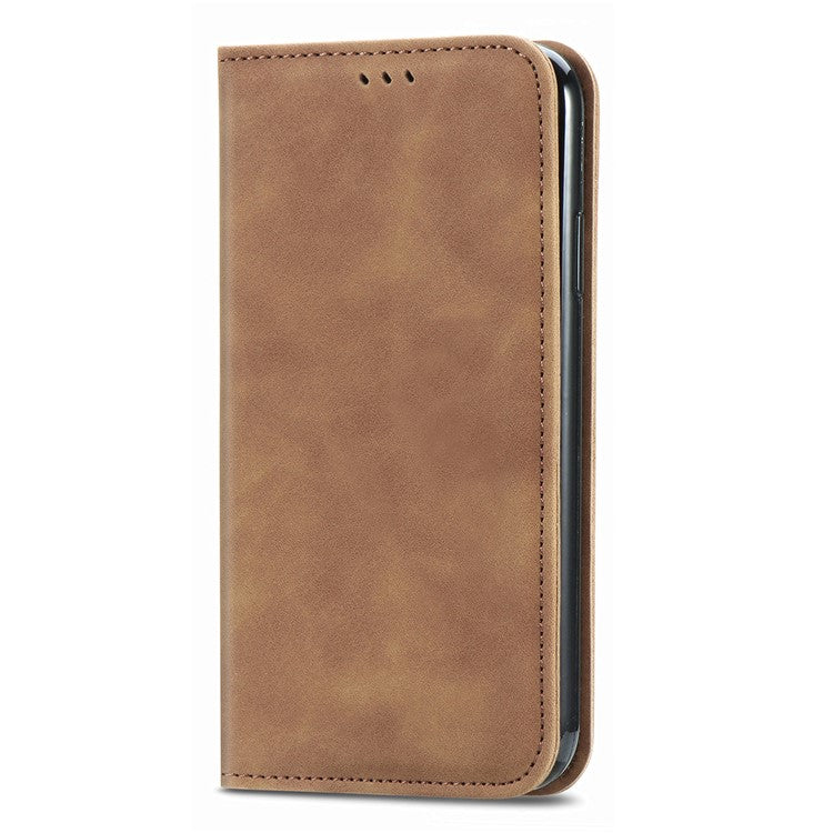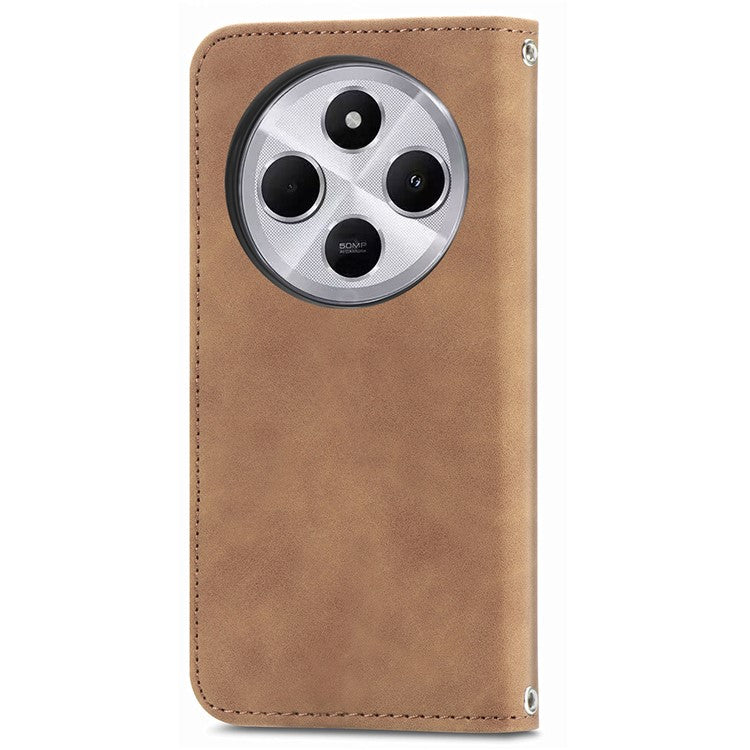 Leather Case For Xiaomi Redmi 14C 4G / 14R 5G / Poco C75 4G Skin Touch Feeling Card Holder Phone Cover Magnetic Absorption - Brown