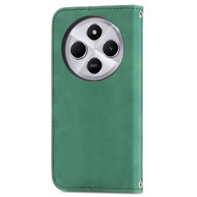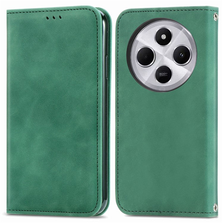 Leather Case For Xiaomi Redmi 14C 4G / 14R 5G / Poco C75 4G Skin Touch Feeling Card Holder Phone Cover Magnetic Absorption - Green