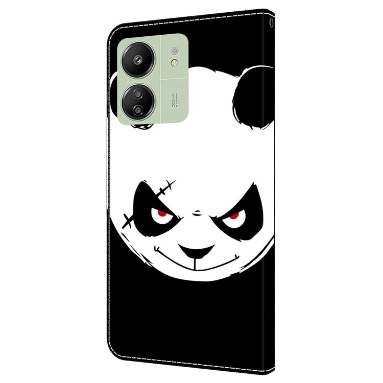 Leather Case For Xiaomi Redmi 14C 4G / Redmi 14R 5G / Poco C75 4G Pattern Printing Anti-Drop Flip Wallet Phone Cover - Angry Panda