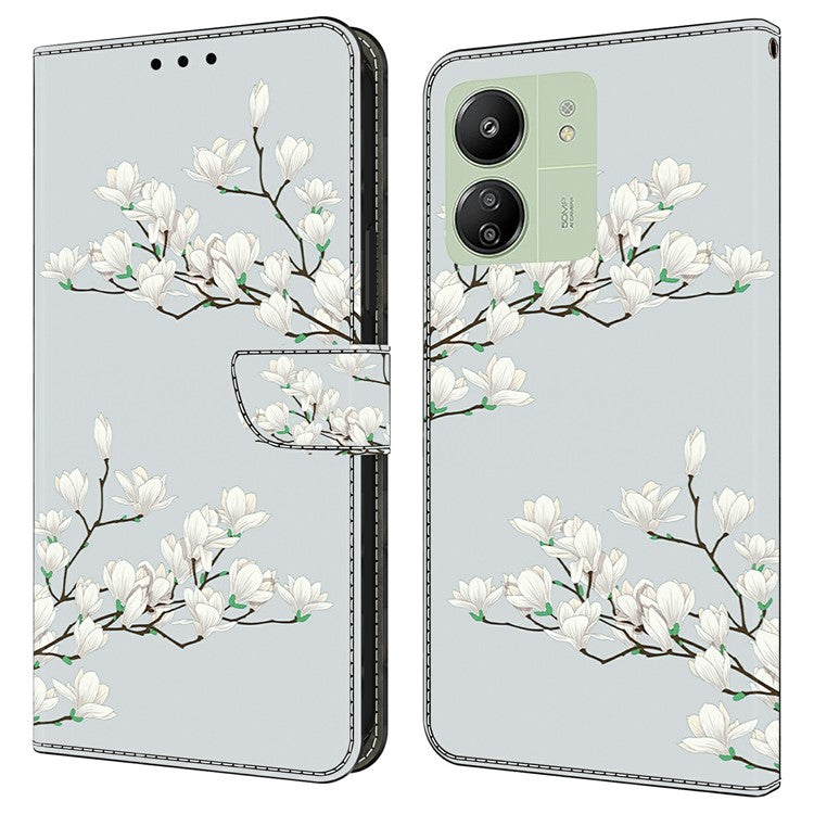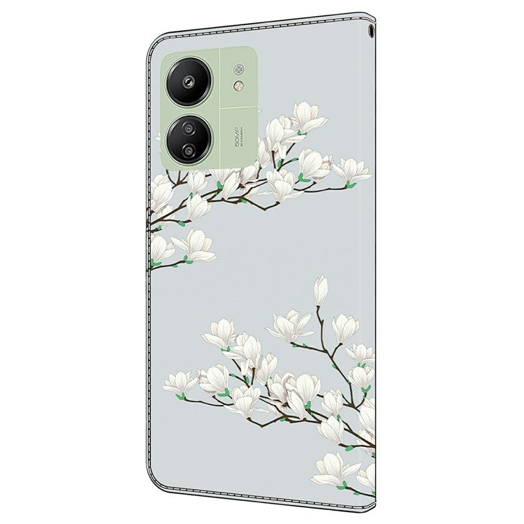 Leather Case For Xiaomi Redmi 14C 4G / Redmi 14R 5G / Poco C75 4G Pattern Printing Anti-Drop Flip Wallet Phone Cover - Magnolia