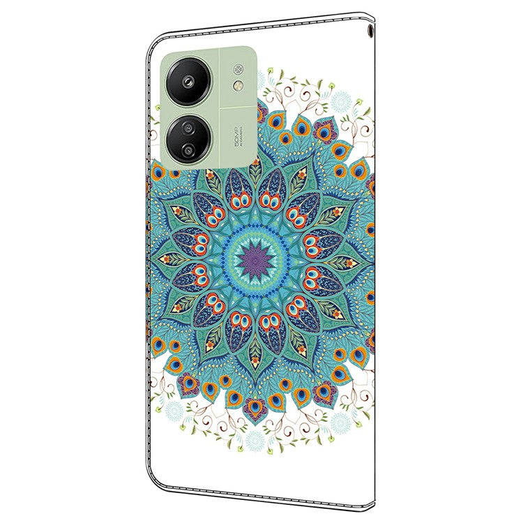 Leather Case For Xiaomi Redmi 14C 4G / Redmi 14R 5G / Poco C75 4G Pattern Printing Anti-Drop Flip Wallet Phone Cover - Peacock