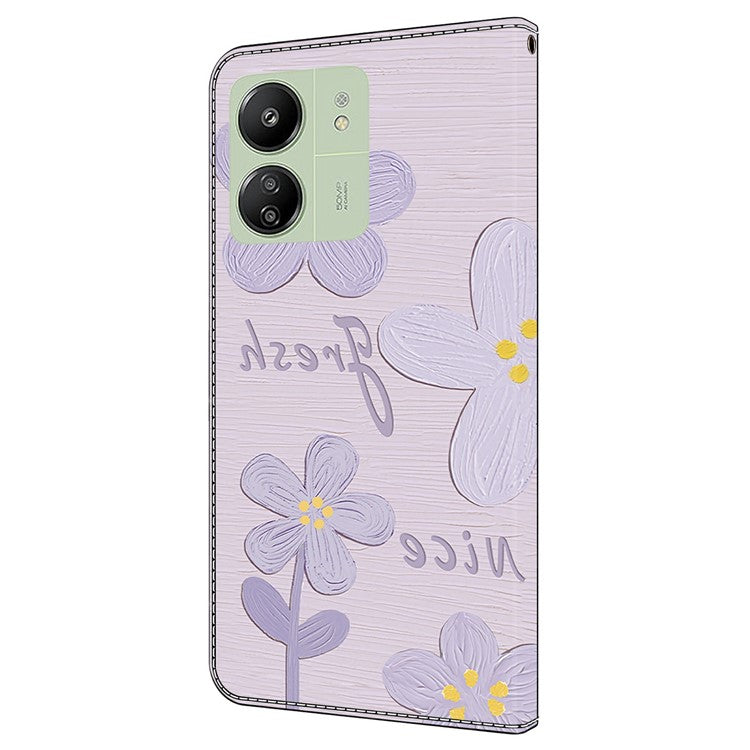 Leather Case For Xiaomi Redmi 14C 4G / Redmi 14R 5G / Poco C75 4G Pattern Printing Anti-Drop Flip Wallet Phone Cover - Purple Flowers