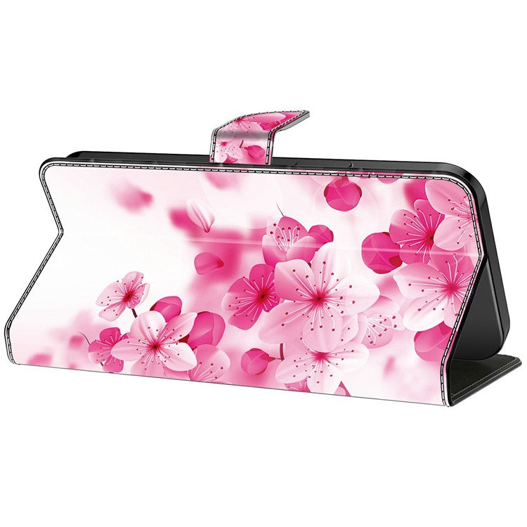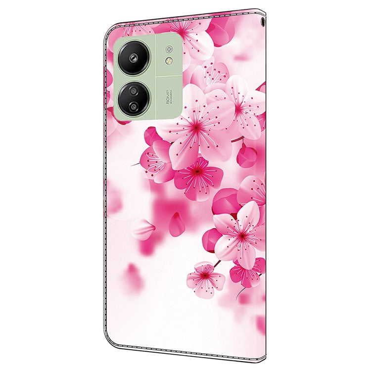 Leather Case For Xiaomi Redmi 14C 4G / Redmi 14R 5G / Poco C75 4G Pattern Printing Anti-Drop Flip Wallet Phone Cover - Red Flowers