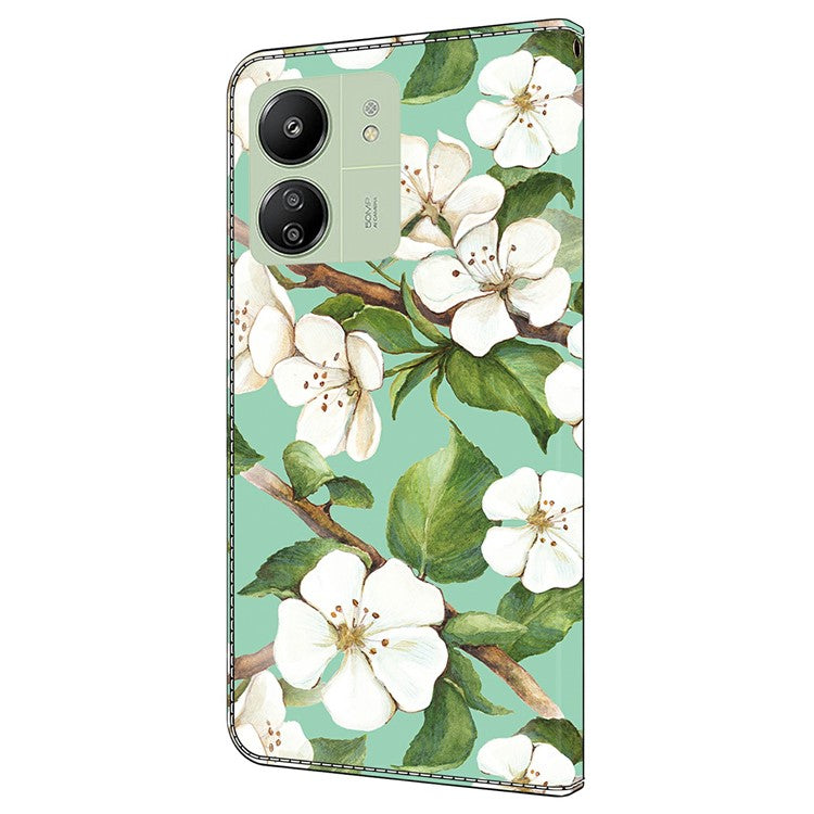 Leather Case For Xiaomi Redmi 14C 4G / Redmi 14R 5G / Poco C75 4G Pattern Printing Anti-Drop Flip Wallet Phone Cover - Watercolor Flowers