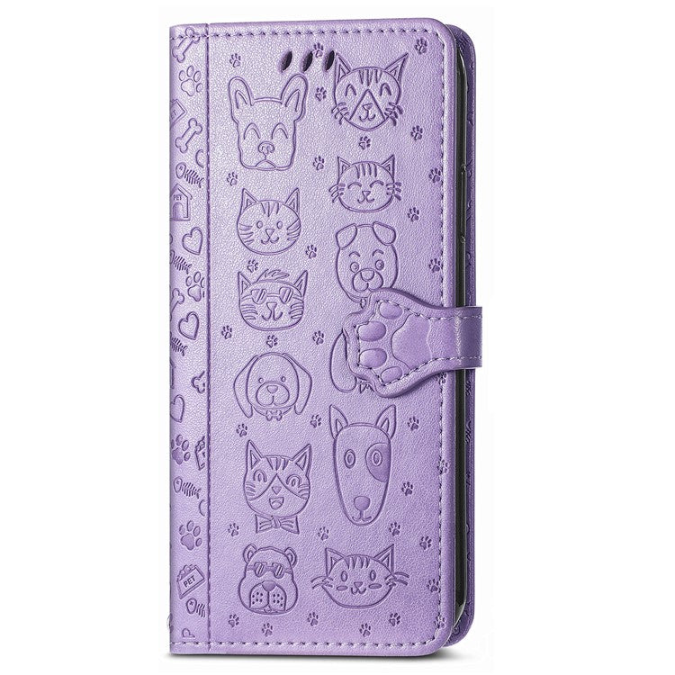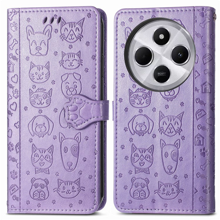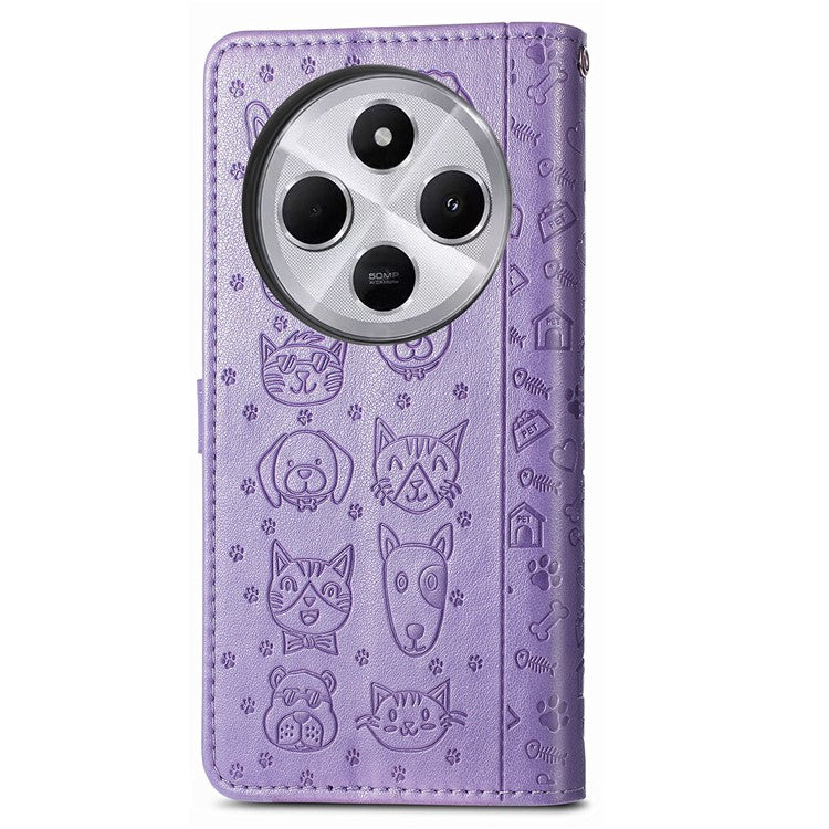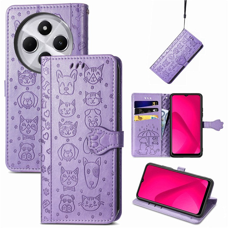 Leather Phone Case For Xiaomi Redmi 14C 4G / 14R 5G / Poco C75 4G Wallet Flip Phone Cover Cute Cat Dog Pattern - Light Purple