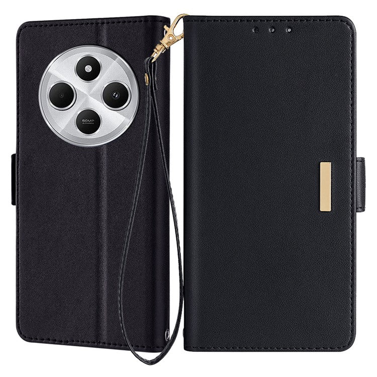 Leather Wallet Case For Xiaomi Redmi 14C 4G / 14R 5G / Poco C75 4G RFID Blocking Stand Cover with Hand Strap - Black