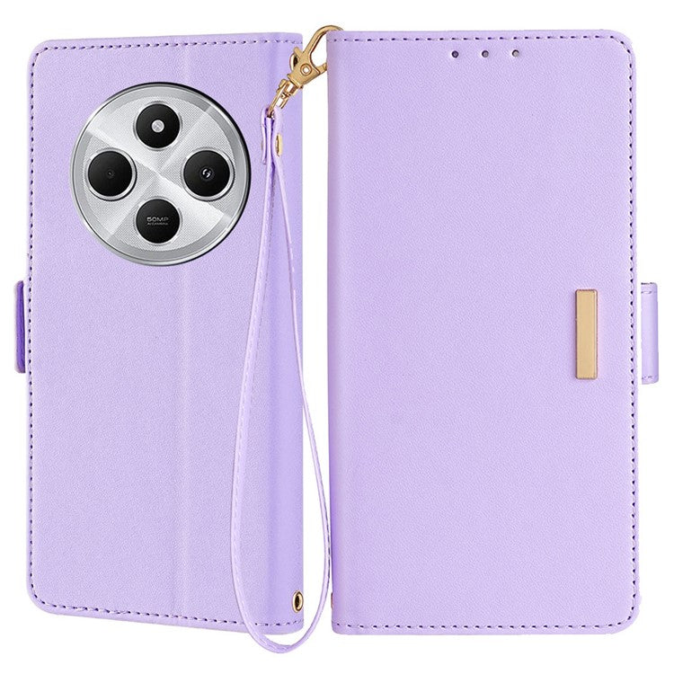 Leather Wallet Case For Xiaomi Redmi 14C 4G / 14R 5G / Poco C75 4G RFID Blocking Stand Cover with Hand Strap - Purple
