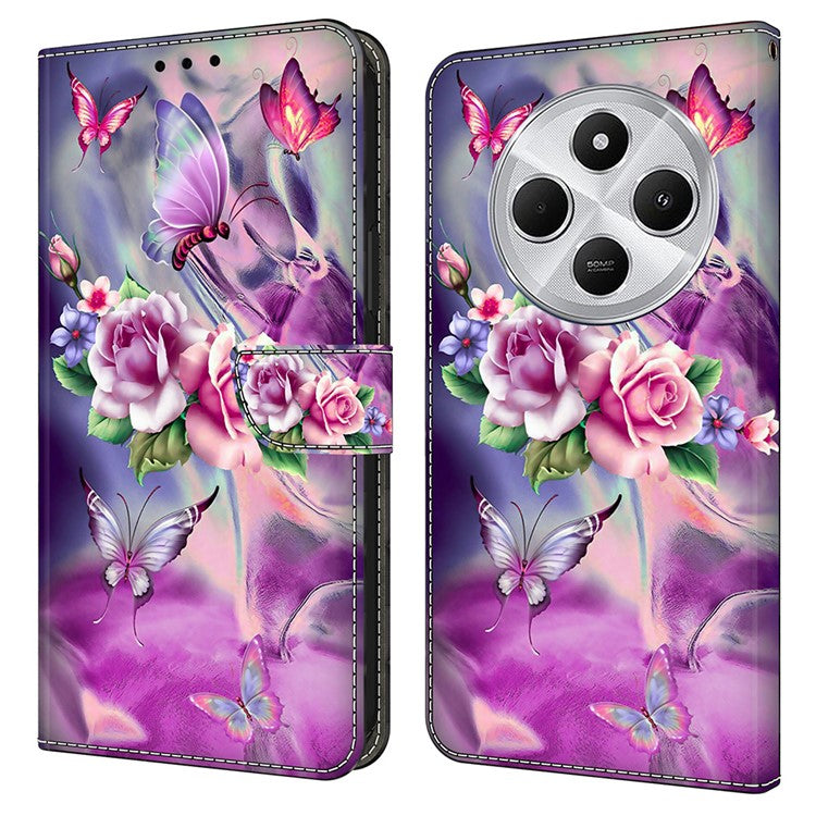 Phone Case For Xiaomi Redmi 14C 4G / 14R 5G / Poco C75 4G 3D Pattern PU Leather Wallet Phone Cover with Stand - Butterflies / Flowers