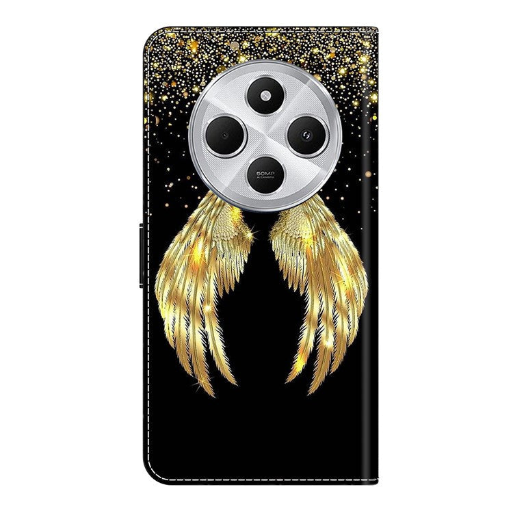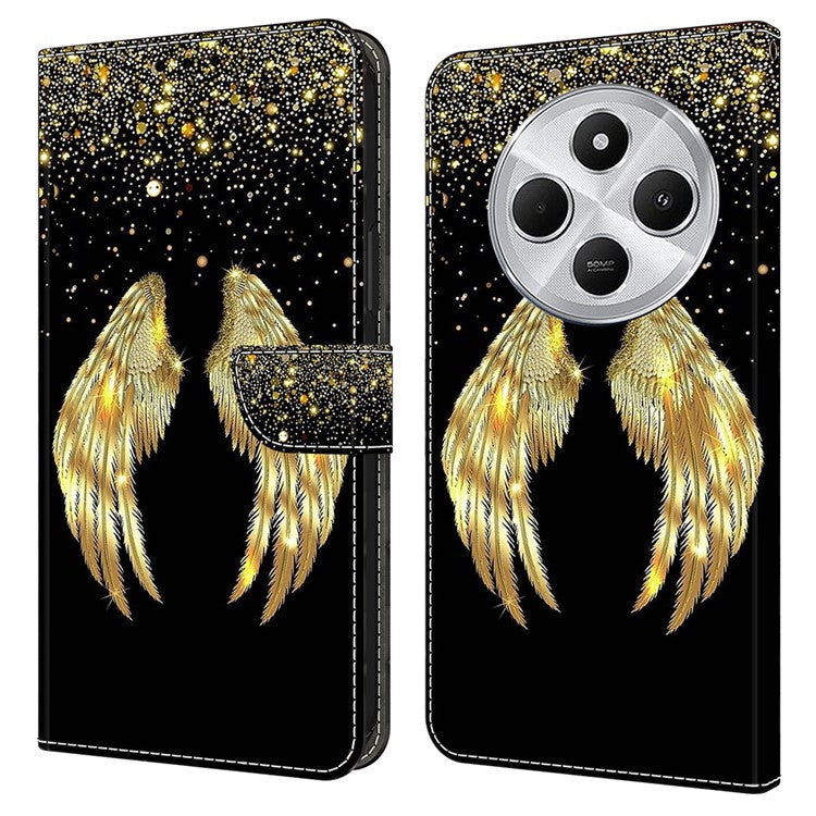 Phone Case For Xiaomi Redmi 14C 4G / 14R 5G / Poco C75 4G 3D Pattern PU Leather Wallet Phone Cover with Stand - Gold Wing