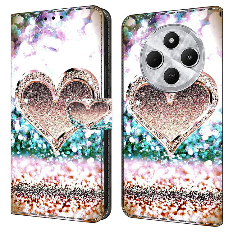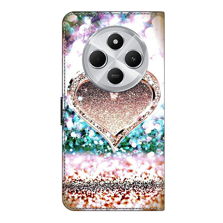 Phone Case For Xiaomi Redmi 14C 4G / 14R 5G / Poco C75 4G 3D Pattern PU Leather Wallet Phone Cover with Stand - Pink Diamond Heart