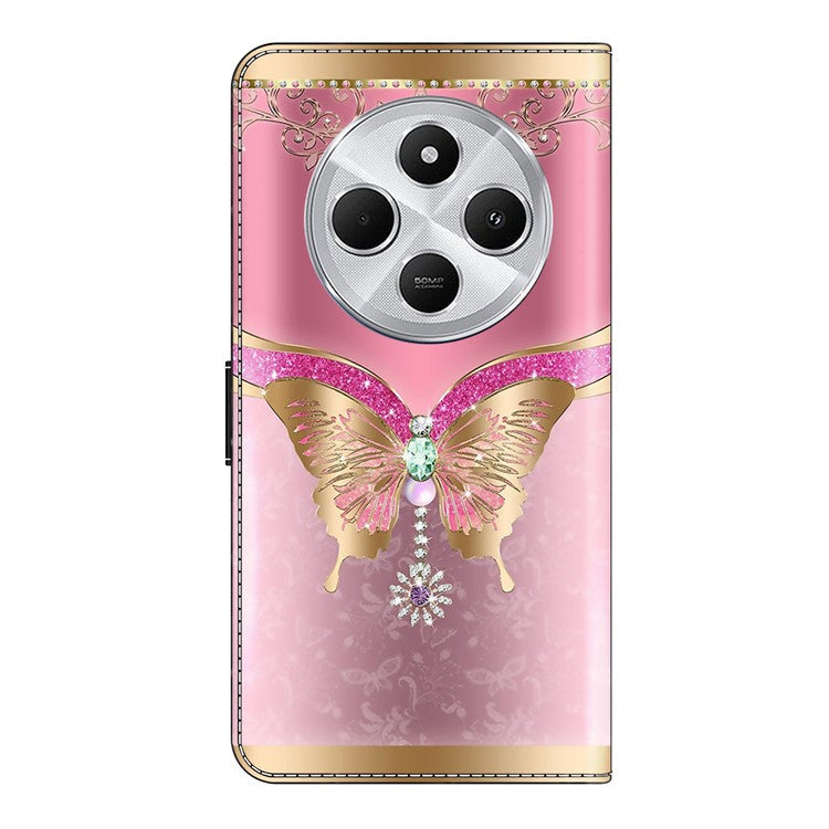 Phone Case For Xiaomi Redmi 14C 4G / 14R 5G / Poco C75 4G 3D Pattern PU Leather Wallet Phone Cover with Stand - Pink / Gold Butterfly