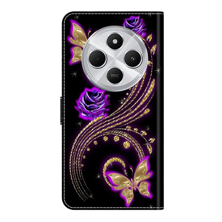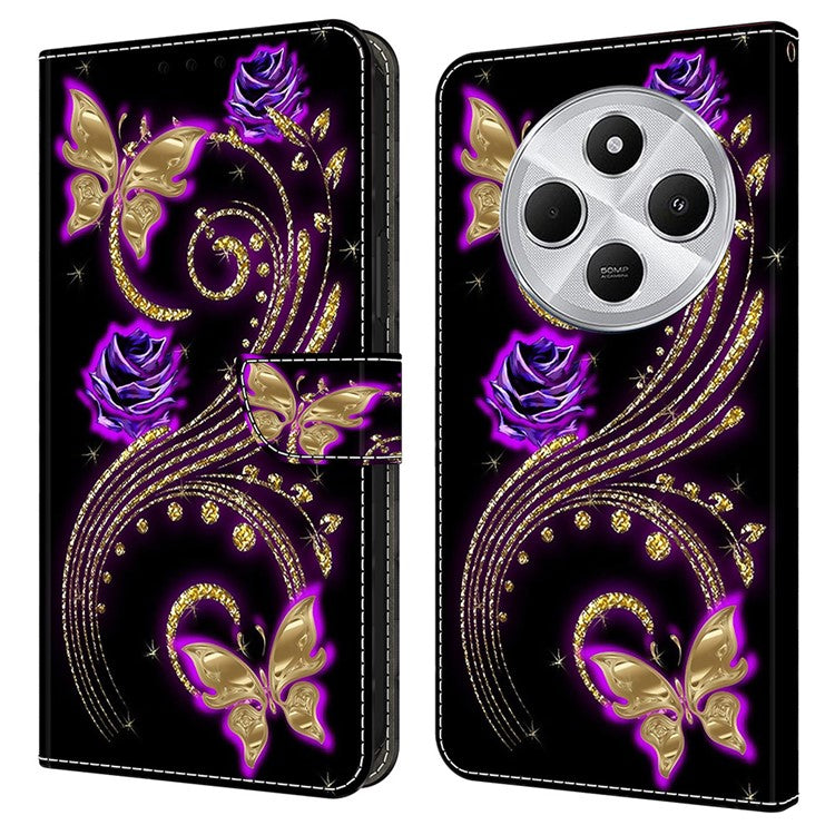 Phone Case For Xiaomi Redmi 14C 4G / 14R 5G / Poco C75 4G 3D Pattern PU Leather Wallet Phone Cover with Stand - Purple Flowers / Butterflies