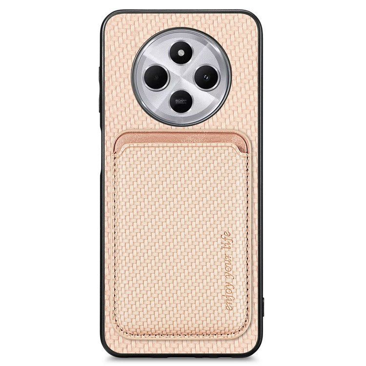 Phone Case For Xiaomi Redmi 14C 4G / 14R 5G / Poco C75 4G Carbon Fiber Leather Back Cover with Detachable Card Bag - Apricot