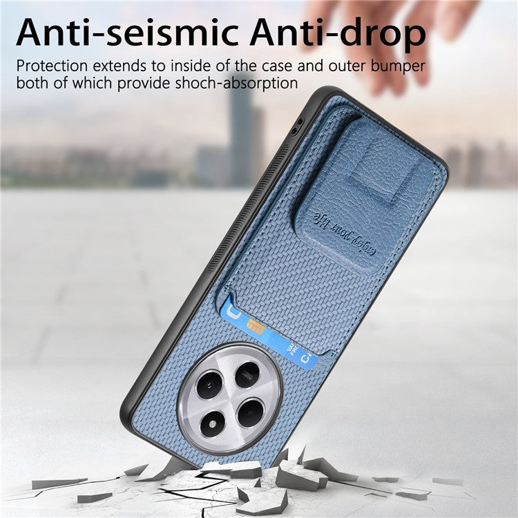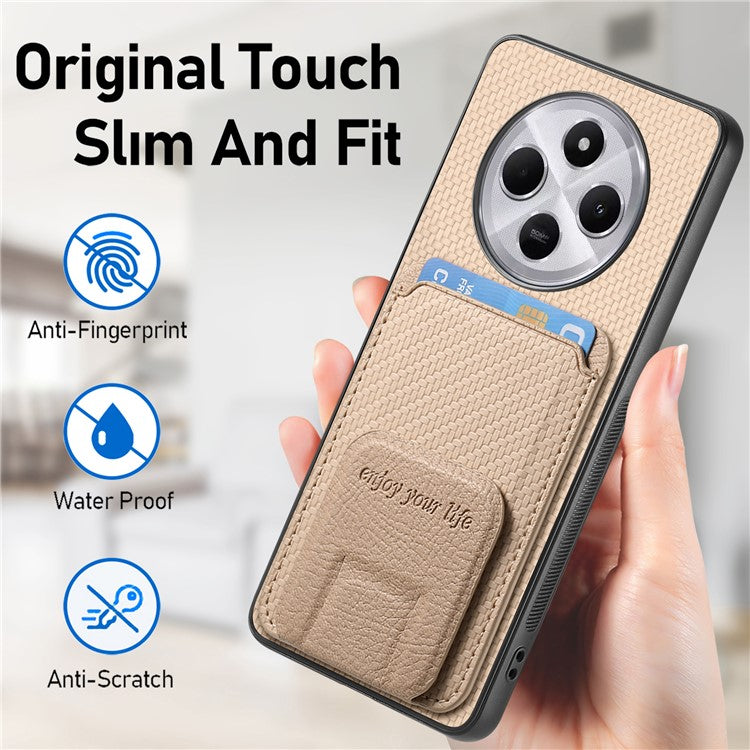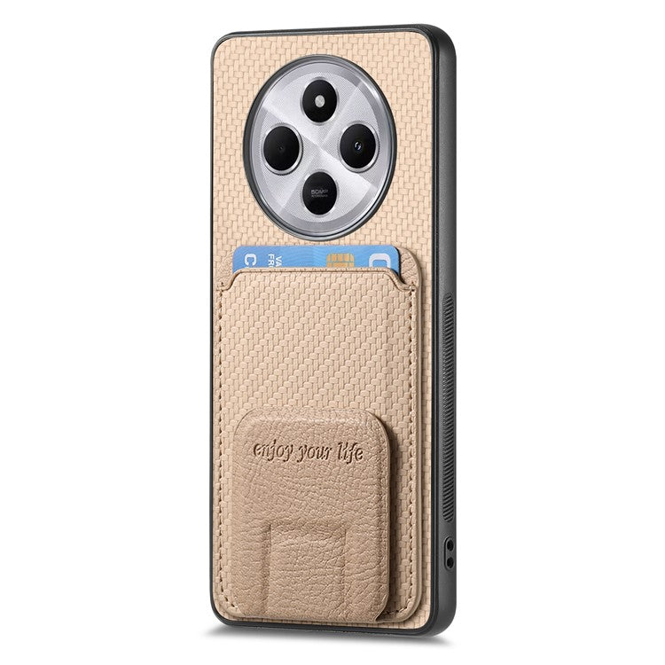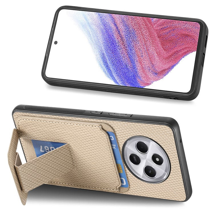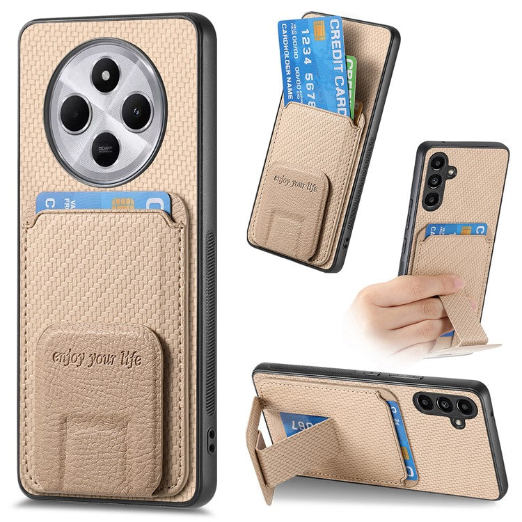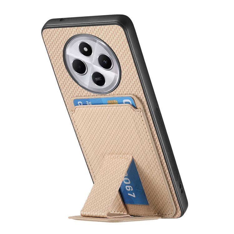 Phone Case For Xiaomi Redmi 14C 4G / 14R 5G / Poco C75 4G Carbon Fiber Texture Leather Coated TPU Back Cover with Card Holder - Beige