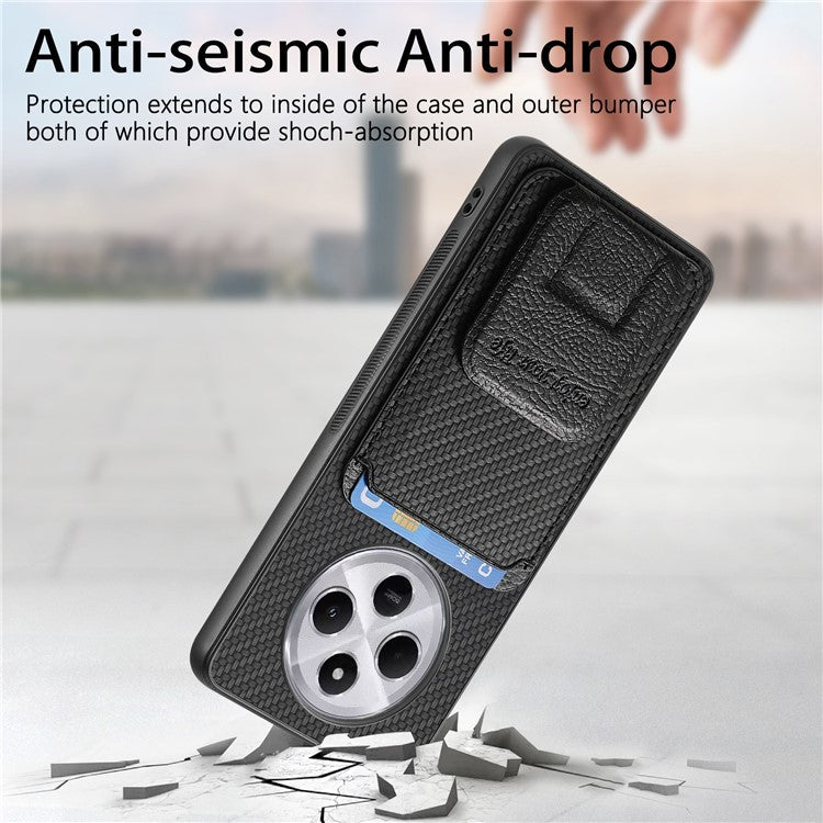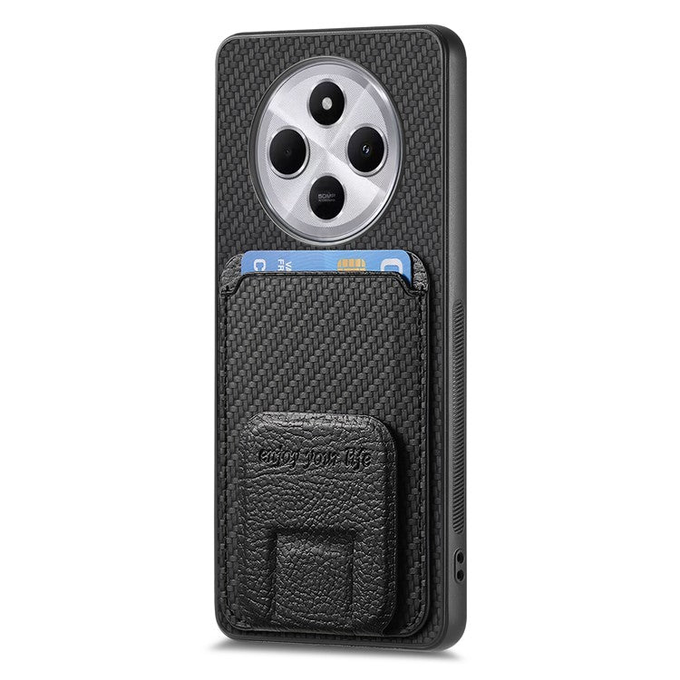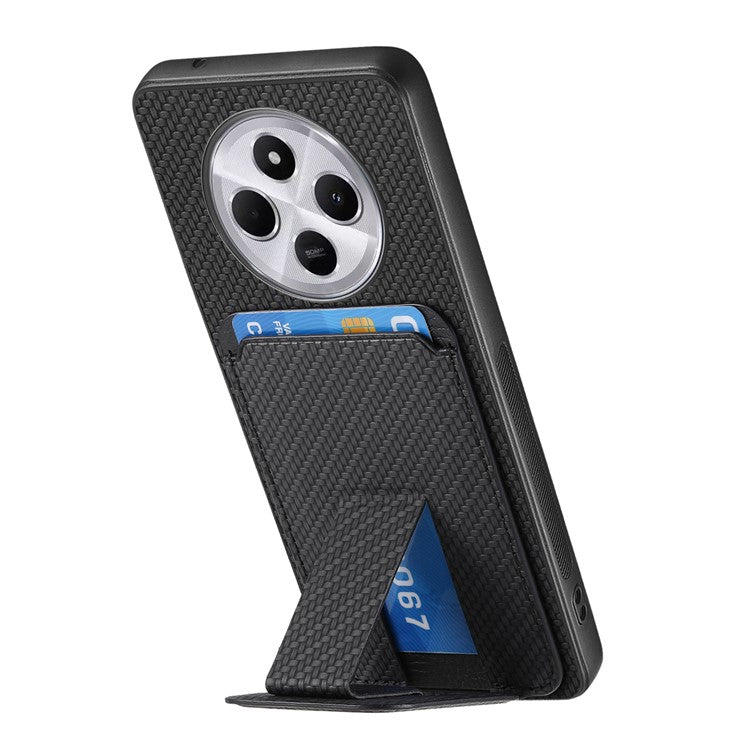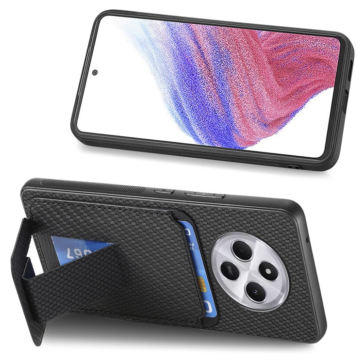 Phone Case For Xiaomi Redmi 14C 4G / 14R 5G / Poco C75 4G Carbon Fiber Texture Leather Coated TPU Back Cover with Card Holder - Black