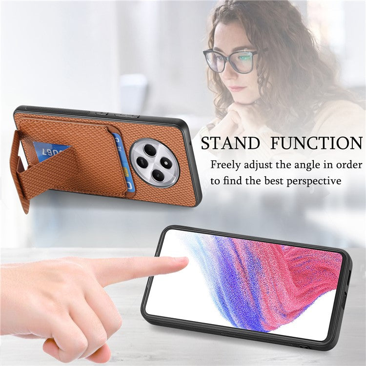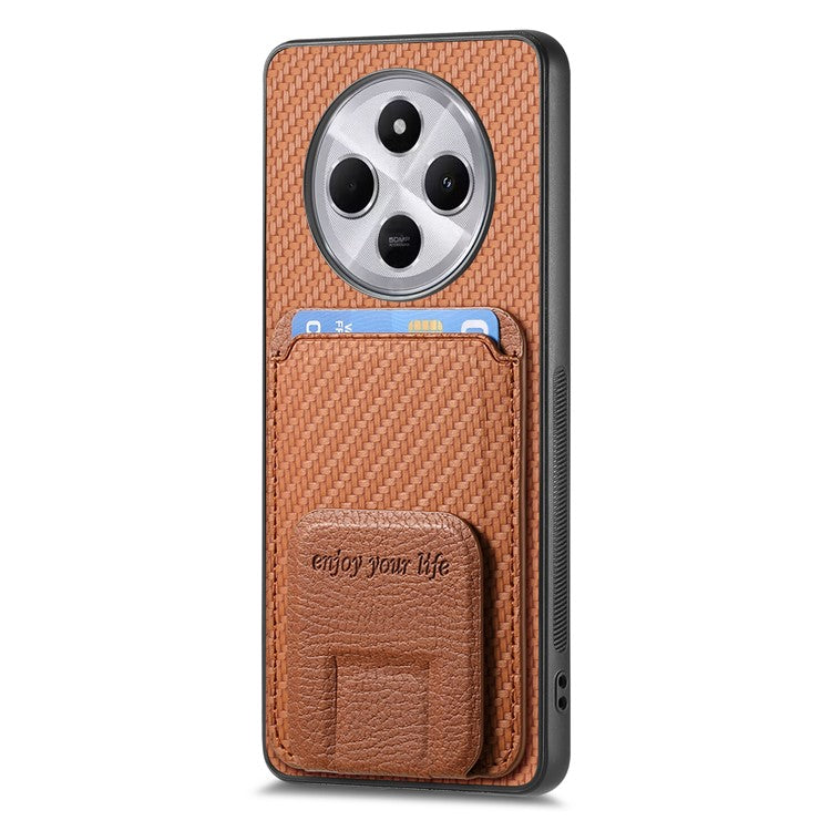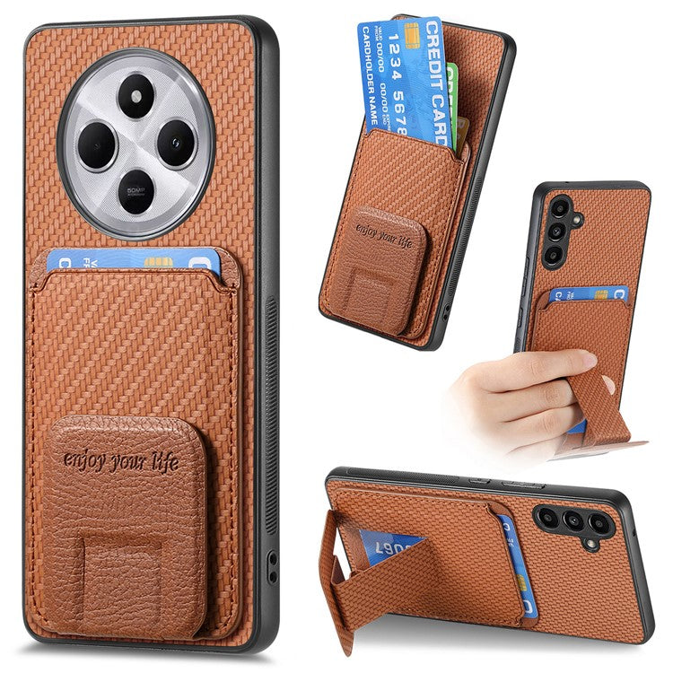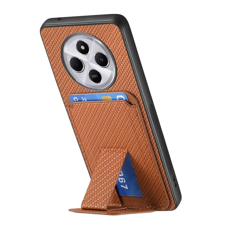 Phone Case For Xiaomi Redmi 14C 4G / 14R 5G / Poco C75 4G Carbon Fiber Texture Leather Coated TPU Back Cover with Card Holder - Brown