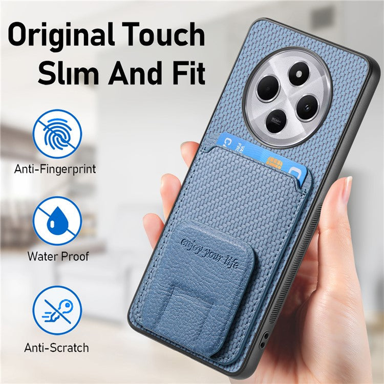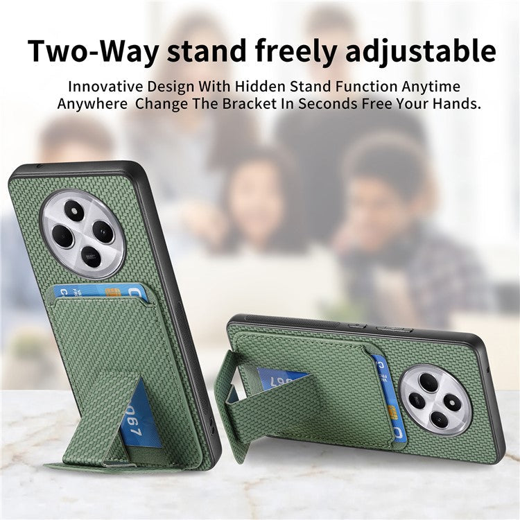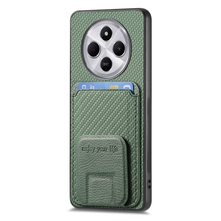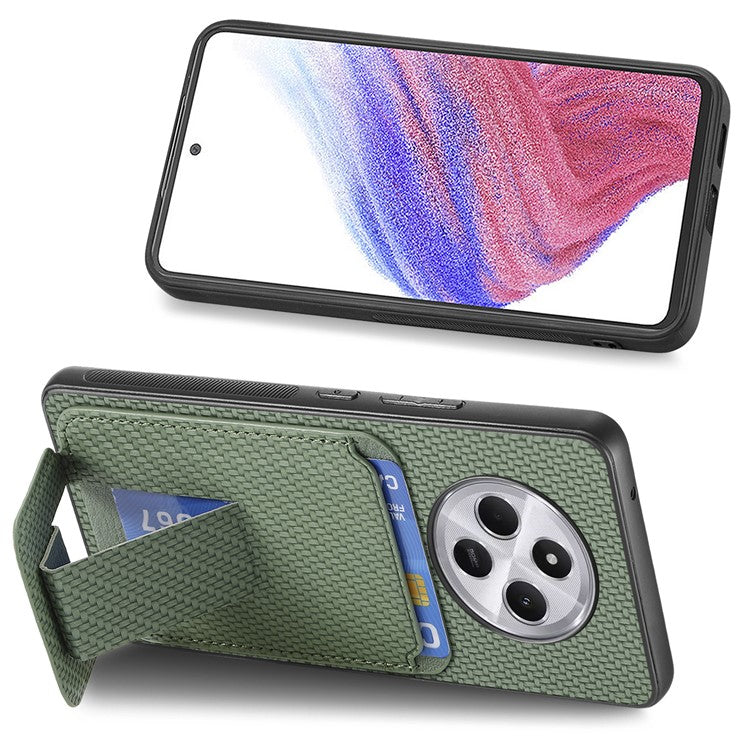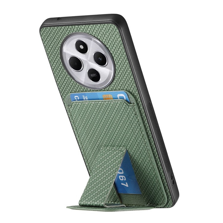 Phone Case For Xiaomi Redmi 14C 4G / 14R 5G / Poco C75 4G Carbon Fiber Texture Leather Coated TPU Back Cover with Card Holder - Green