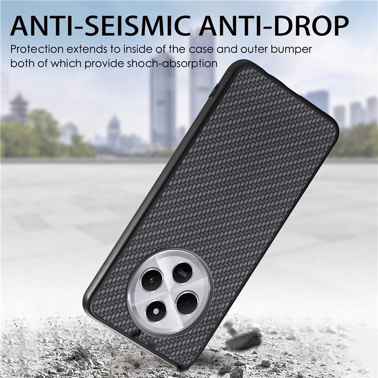 Phone Case For Xiaomi Redmi 14C 4G / 14R 5G / Poco C75 4G Carbon Fiber Texture PU+PC+TPU Back Cover - Apricot
