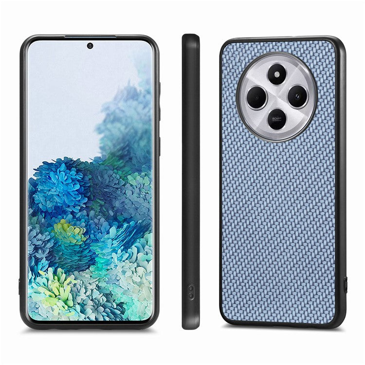 Phone Case For Xiaomi Redmi 14C 4G / 14R 5G / Poco C75 4G Carbon Fiber Texture PU+PC+TPU Back Cover - Blue