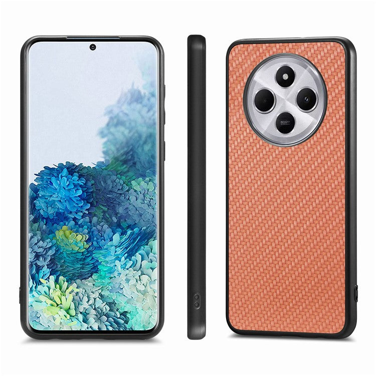 Phone Case For Xiaomi Redmi 14C 4G / 14R 5G / Poco C75 4G Carbon Fiber Texture PU+PC+TPU Back Cover - Brown