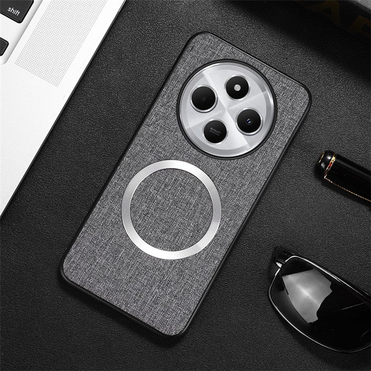Phone Case For Xiaomi Redmi 14C 4G / 14R 5G / Poco C75 4G Drop-Proof TPU+Cloth Back Cover Compatible with MagSafe - Grey
