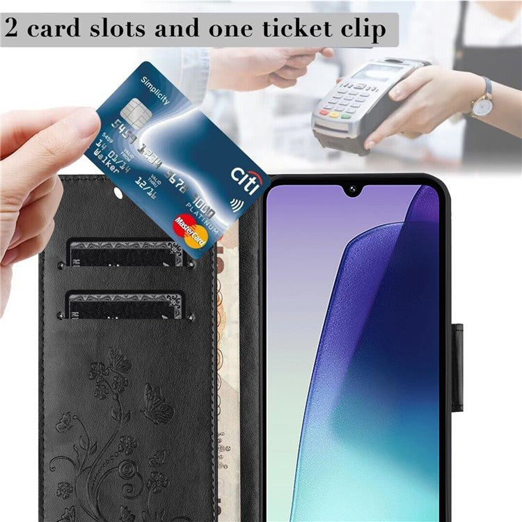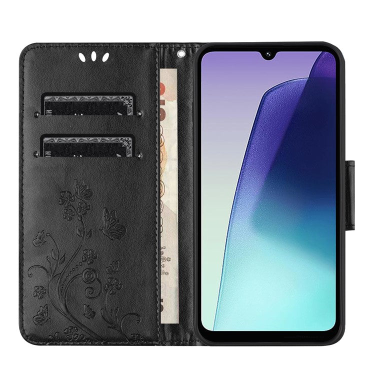 Phone Case For Xiaomi Redmi 14C 4G / 14R 5G / Poco C75 4G Imprinted Mini Butterfly Leather Wallet Phone Cover - Black