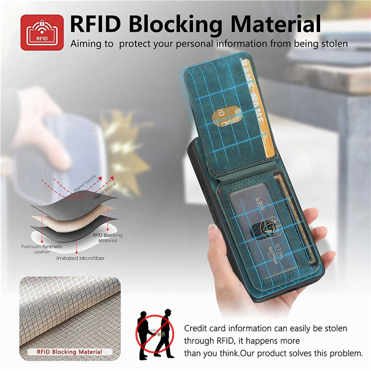 - ?RFID Blocking Material? Premium PU leather and TPU material with RFID blocking function, protect your personal information from being stolen