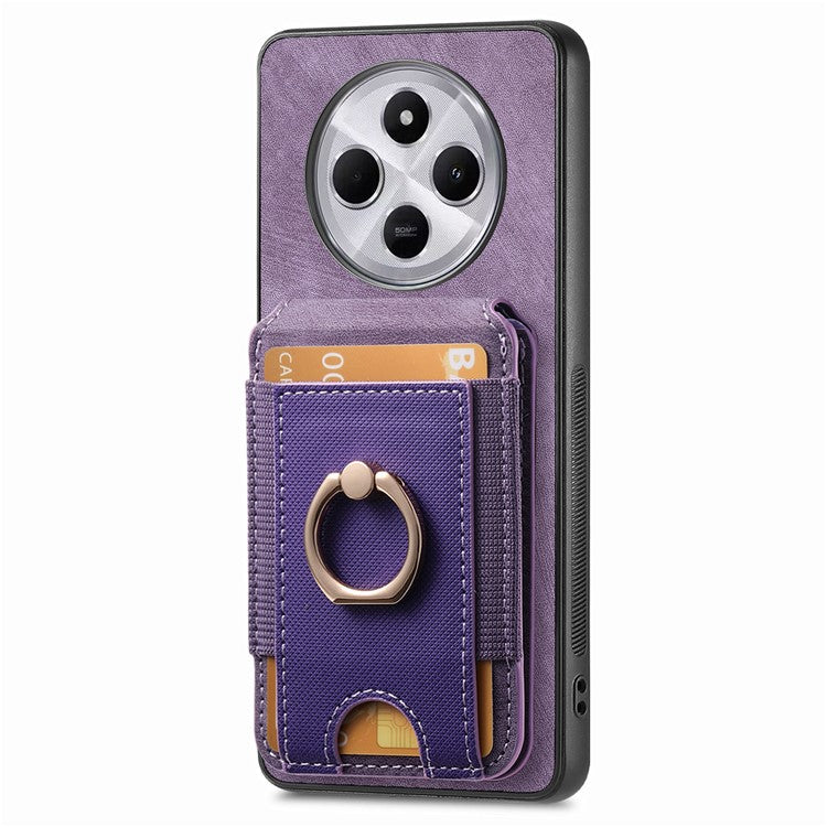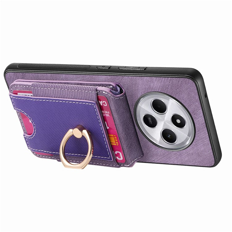 Phone Case For Xiaomi Redmi 14C 4G / 14R 5G / Poco C75 4G Kickstand Leather Back Cover with Detachable Card Holder - Purple