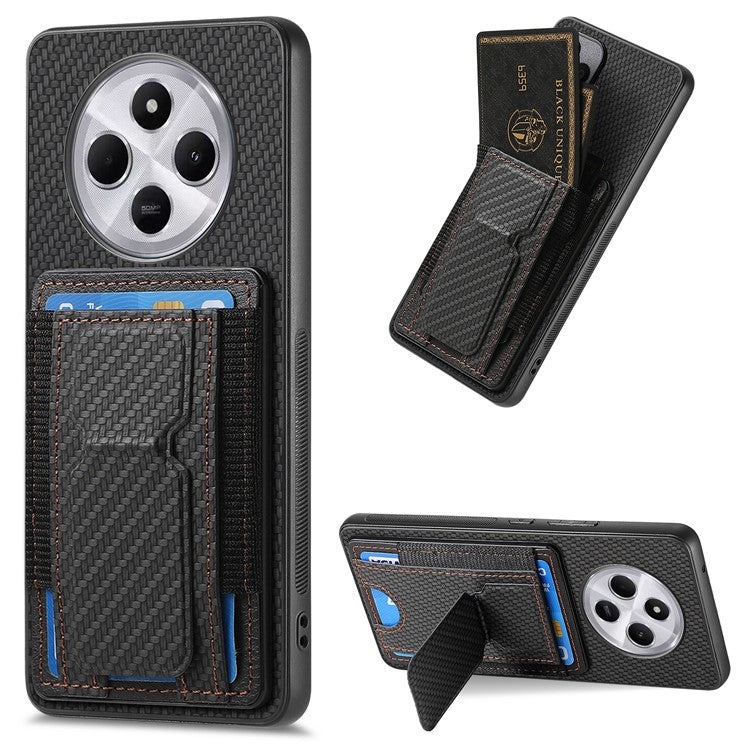 Phone Case For Xiaomi Redmi 14C 4G / 14R 5G / Poco C75 4G Leather Back Cover with Kickstand Card Holder - Black