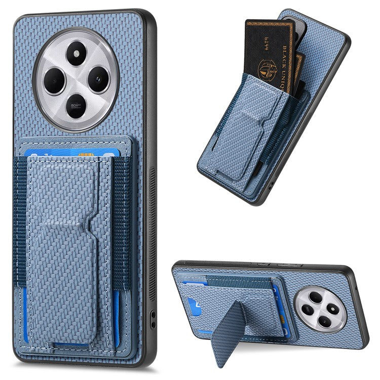 Phone Case For Xiaomi Redmi 14C 4G / 14R 5G / Poco C75 4G Leather Back Cover with Kickstand Card Holder - Blue