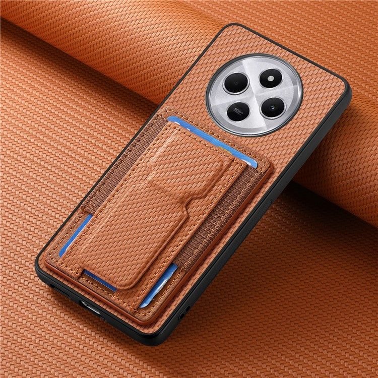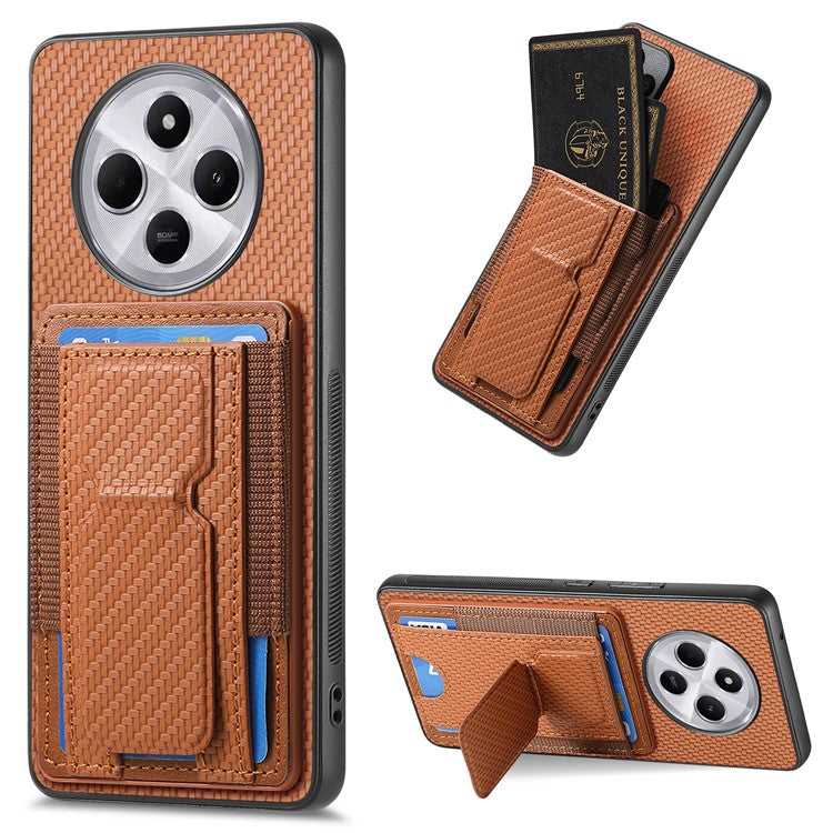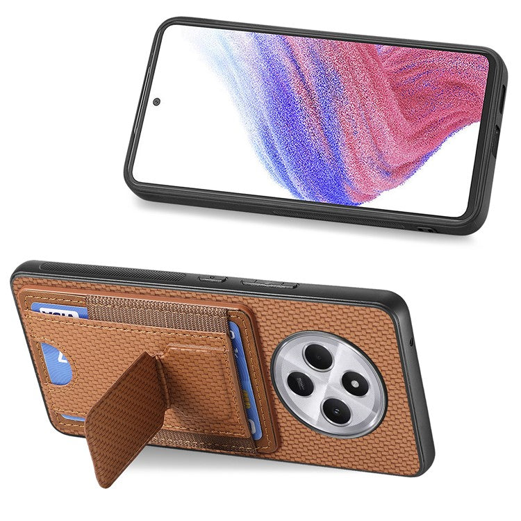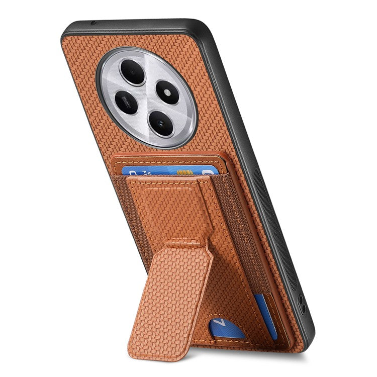 Phone Case For Xiaomi Redmi 14C 4G / 14R 5G / Poco C75 4G Leather Back Cover with Kickstand Card Holder - Brown