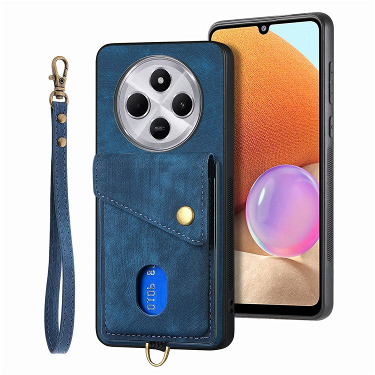 Phone Case For Xiaomi Redmi 14C 4G / 14R 5G / Poco C75 4G Leather+TPU Back Cover with Card Slot Kickstand - Blue