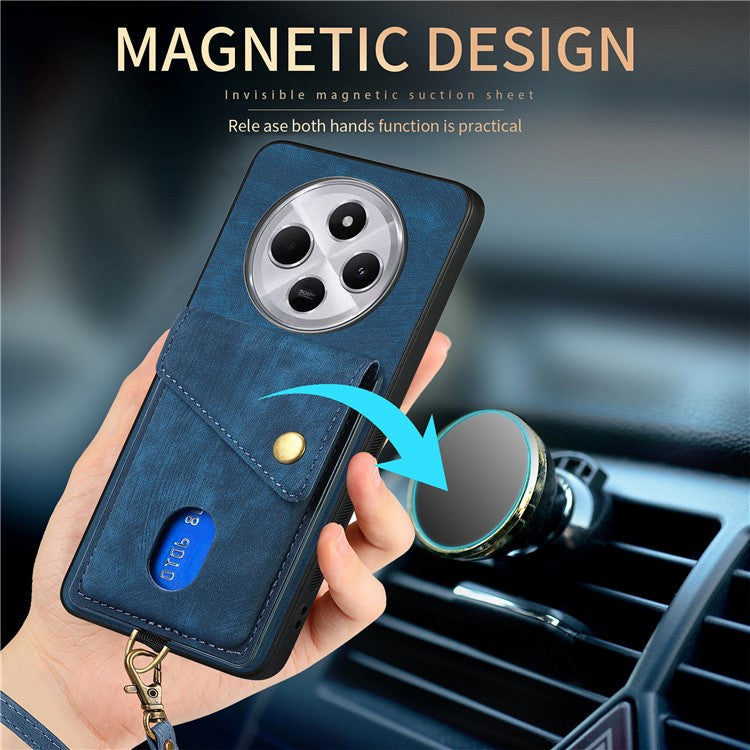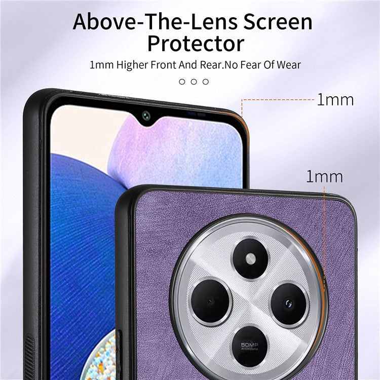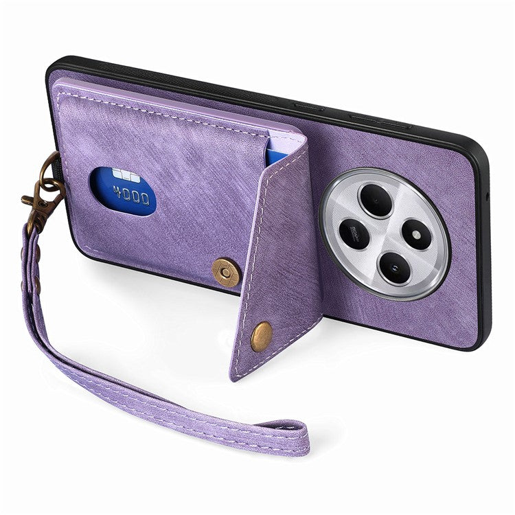 Phone Case For Xiaomi Redmi 14C 4G / 14R 5G / Poco C75 4G Leather+TPU Back Cover with Card Slot Kickstand - Purple