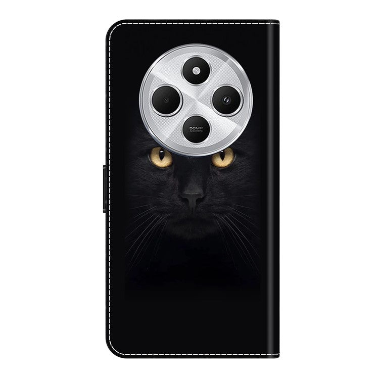 Phone Case For Xiaomi Redmi 14C 4G / 14R 5G / Poco C75 4G Magnetic Clasp 3D Pattern Leather Wallet Phone Cover - Black Cat