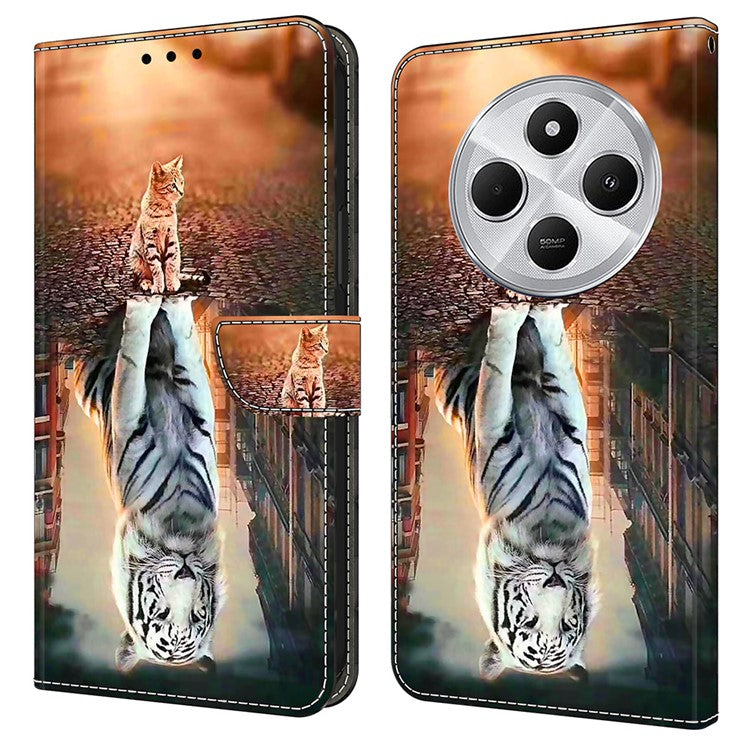 Phone Case For Xiaomi Redmi 14C 4G / 14R 5G / Poco C75 4G Magnetic Clasp 3D Pattern Leather Wallet Phone Cover - Cat and Tiger