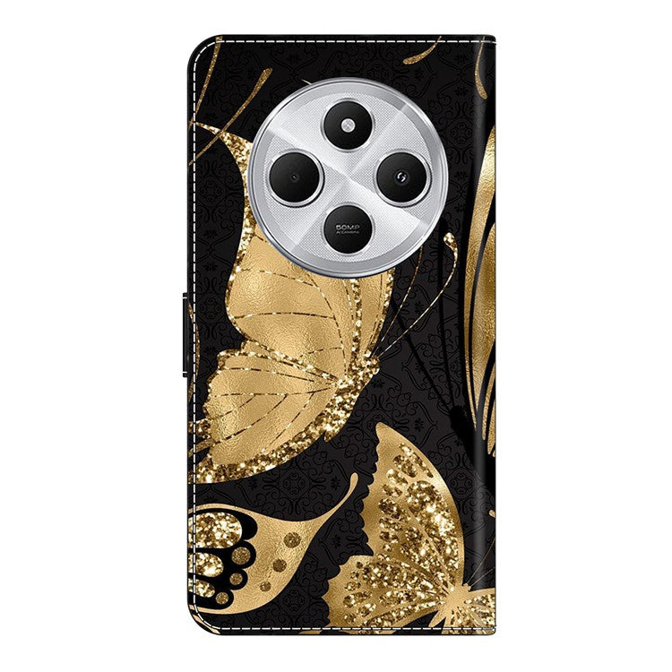 Phone Case For Xiaomi Redmi 14C 4G / 14R 5G / Poco C75 4G Magnetic Clasp 3D Pattern Leather Wallet Phone Cover - Golden Butterfly