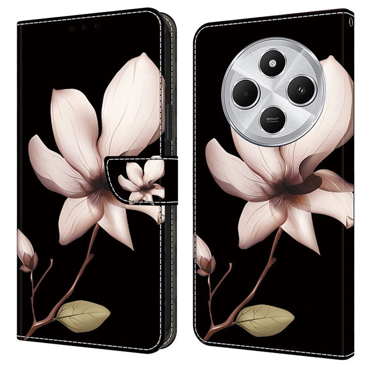 Phone Case For Xiaomi Redmi 14C 4G / 14R 5G / Poco C75 4G Magnetic Clasp 3D Pattern Leather Wallet Phone Cover - Pink Flower